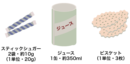 3.低血糖の対処 低血糖の症状がみられたら、砂糖かブドウ糖を20gまたはそれに相...